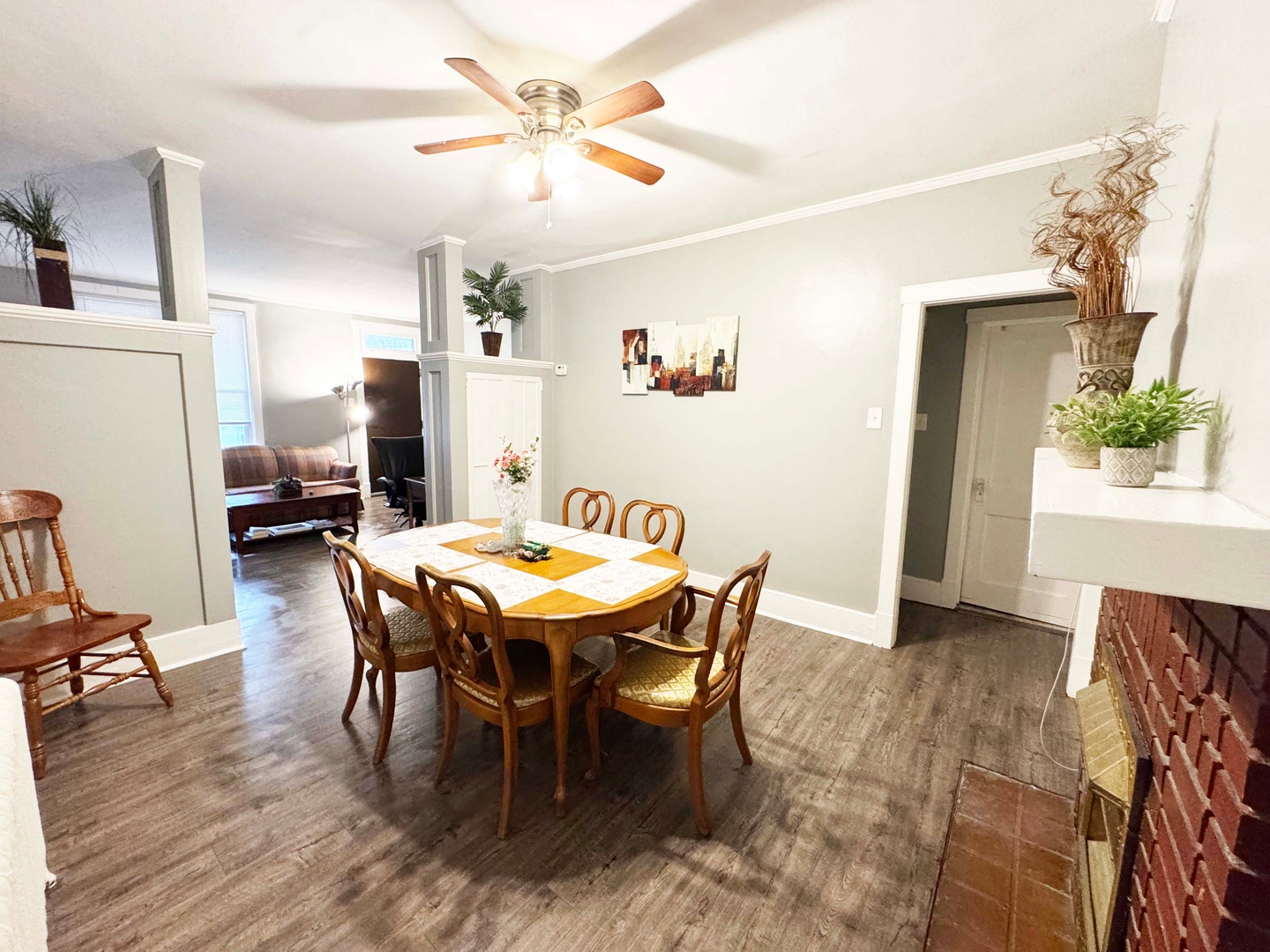 The generous living room and dining area offer ample space to kick back and relax after a day of adventures in Pittsburgh.